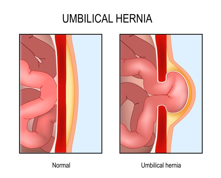A hernia is a defect or weakening in the abdominal wall that allows tissue (usually intestines) or fat to protrude and form a lump. Hernias are more common in adults, although they can also develop in children and infants.